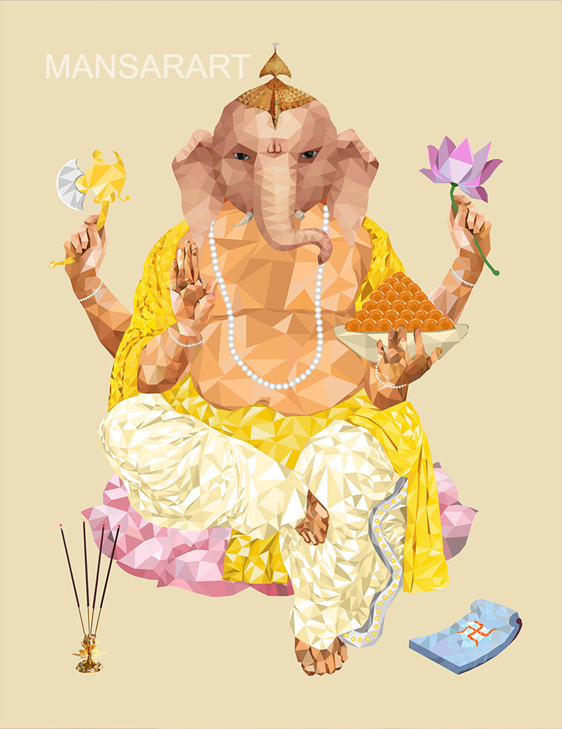 This is beautiful artwork of Lord Ganesh ji is created in Poly Art style. Poly Art, short for polygonal art, is a modern artistic style that uses geometric shapes to create intricate and visually captivating artwork. This style involves breaking down images into simplified geometric forms, typically polygons, and arranging them in a way that forms a cohesive and recognizable composition.The appeal of Poly Art lies in its ability to transform ordinary images into visually engaging and abstract compositions.....