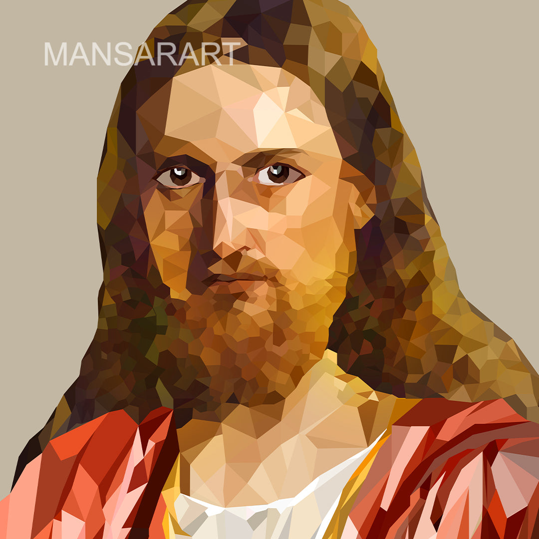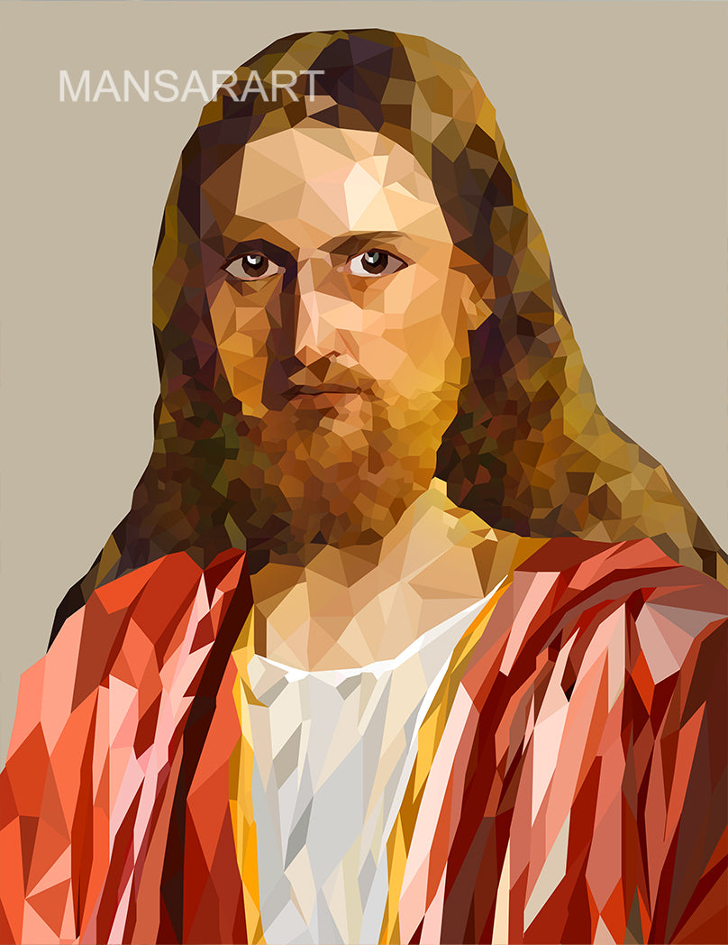 The artwork of Jesus is created in Poly Art. Poly Art, short for polygonal art, is a modern artistic style that uses geometric shapes to create intricate and visually captivating artwork. This style involves breaking down images into simplified geometric forms, typically polygons, and arranging them in a way that forms a cohesive and recognizable composition. The appeal of Poly Art lies in its ability to transform ordinary images into visually engaging and abstract compositions.