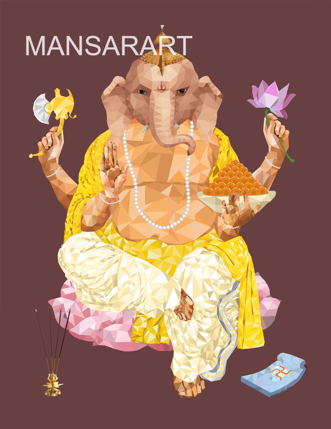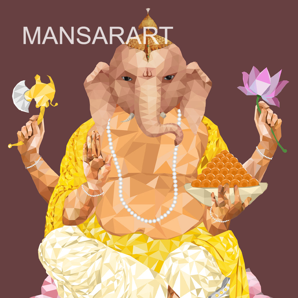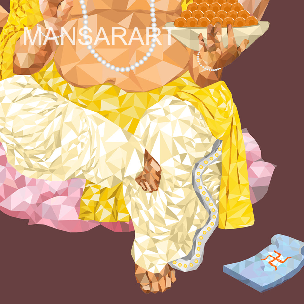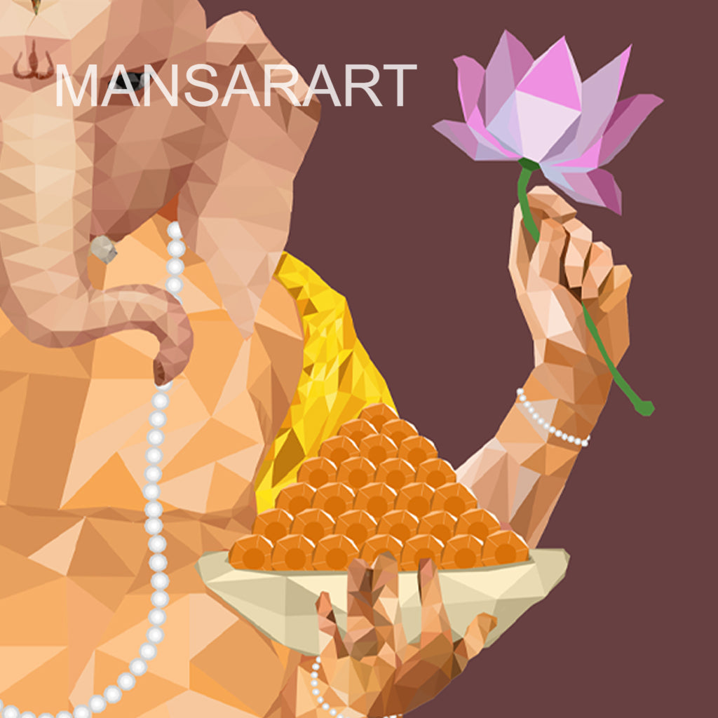 This is beautiful artwork of Lord Ganesh ji is created in Poly Art style. Poly Art, short for polygonal art, is a modern artistic style that uses geometric shapes to create intricate and visually captivating artwork. This style involves breaking down images into simplified geometric forms, typically polygons, and arranging them in a way that forms a cohesive and recognizable composition. The appeal of Poly Art lies in its ability to transform ordinary images into visually engaging and abstract compositions.